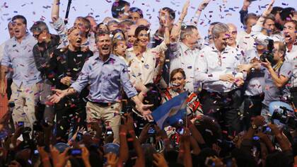 Anoche, pese a que se estimaba un triunfo por una diferencia mayor, todo era alegría y festejos en el búnker de Cambiemos, un entusiasmo que se contagió en los alrededores del Obelisco y en distintos centros urbanos del país. En medio de una ovación y bajo una lluvia de papelitos, Macri agradeció especialmente a sus socios electorales, Ernesto Sanz (UCR) y Elisa Carrió (Coalición Cívica), con cuyas fuerzas políticas articulará un gobierno de coalición.