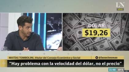 El economista Matías Tombolini pasó por el programa Terapia de Noticias y explicó el problema que, según él, hay con la suba del dólar que se disparó a $19,26: "Hay un problema con velocidad, pero no con el precio. Me preocupa que suba muy rápido", confesó.