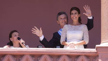 El Presidente salió al balcón luego de recibir los atributos, lo acompañaron la primera dama, su hija y la vicepresidenta