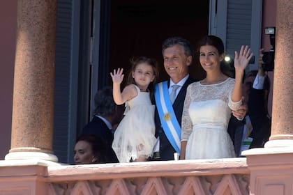 El presidente Mauricio Macri junto a su esposa Juliana Awada , su pequeña hija Antonia y la vicepresidenta Gabriela Michetti se asomó al balcón de la Casa Rosada, para saludar a la gente que colmaba la Plaza de Mayo.