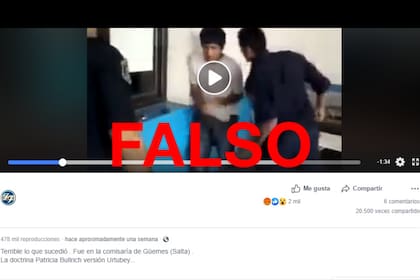 Ante la consulta de este medio, desde el sector de Prensa del Ministerio de Seguridad que lidera Bullrich ratificaron que se trata de una "fake news" y enviaron un comunicado sobre el tema. Allí, se lee: "El episodio que se muestra en el citado video, que se está viralizando por las redes, no se produjo durante esta gestión, sino que es del año 2012. La publicación en el sitio YouTube fue en el año 2013. Las imágenes serían parte de un hecho que habría acontecido en octubre de 2012 en la localidad de Orán, provincia de Salta".