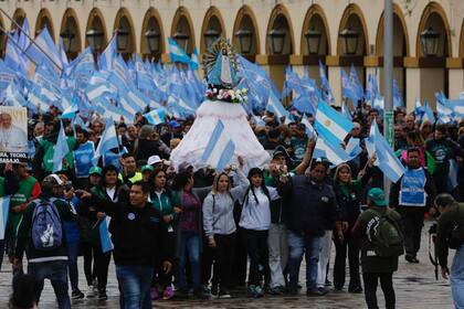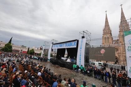 La movilización, con la consigna "Por paz, pan y trabajo", contó con la adhesión de los principales movimientos sociales e intendentes peronistas del conurbano bonaerense. Reunió a miles de personas frente a la iglesia. El acto comenzó pasadas las 12, con el Himno Nacional. El arzobispo de Mercedes-Luján, Agustín Radrizzani, ofició una misa a continuación.