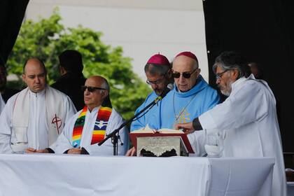 El Frente Sindical para el Modelo Nacional (Fresimona), que encabezan Pablo Moyano y Ricardo Pignanelli, recurrió a sus vínculos con la Iglesia y montó hoy un acto para pedir un cambio en la política económica del Gobierno.