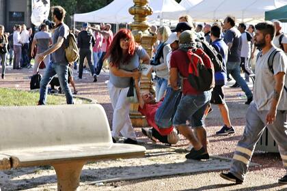 La sesión para tratar el Presupuesto continuaba esta tarde en el Senado y hubo corridas frente al Palacio del Congreso Nacional en las que un hombre resultó detenido.