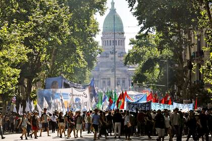 Organizaciones sociales, agrupaciones sindicales y partidos de izquierda expresaban su rechazo al proyecto. En los alrededores de una plaza Congreso vallada había banderas del Polo Obrero, la Izquierda Socialista, el FIT, el MTL, la CTA, ATE, Ctera, Barrios de Pie y el sindicalismo combativo y Unidad Ciudadana, que montó una carpa a la altura del monumento