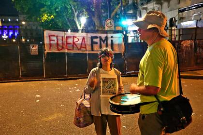A diferencia de lo que se vivió durante la sesión de Diputados, pocas personas permanecen en los alrededores de la Cámara alta. Grupos con consignas en contra del Gobierno y del acuerdo con el FMI