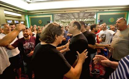 Unidos en el reclamo, los trabajadores de casinos rechazaron ayer en Mar del Plata la decisión del gobierno provincial de cerrar tres salas de juego y consideraron este paso como una maniobra para entregarles la industria a los "amigos del poder". La protesta terminó con incidentes y empujones en el hall del Casino Central. La manifestación fue en rechazo del plan que anunció hace dos días María Eugenia Vidal para licitar tragamonedas y cerrar tres casinos y un bingo en la provincia de Buenos Aires.