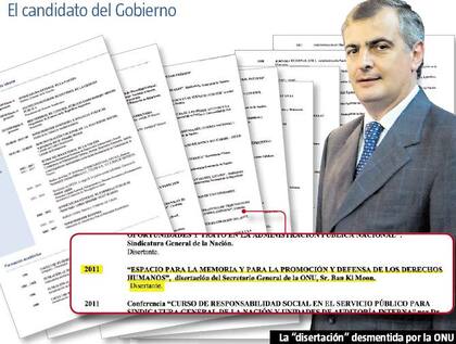 - Desmentida . En el CV que presentó ante el Ministerio de Justicia dice que fue "disertante" en una conferencia de Ban Ki-moon, pero la ONU lo negó.