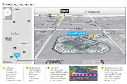 Según se pudo reconstruir de fuentes de la policía y de la gobernación, los tres detenidos se escaparon cerca de las 2.30, tras reducir y maniatar a dos guardias. Luego llegaron al puesto 1, redujeron a otro guardia y lo tomaron como rehén. Con él fueron hasta el barrio Villa Belgrano, donde se apearon. Dejaron al agente dentro del auto y un arma de juguete (ver aparte). La causa quedó a cargo del fiscal Cristian Citterio y el juez de Garantías N° 3 de Azul, Federico Barberena.