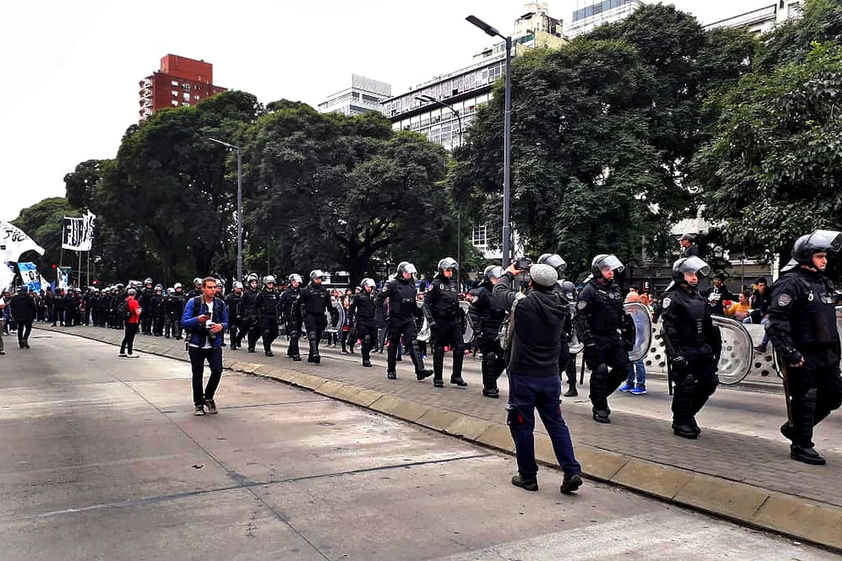 La presencia policial es numerosa en la zona, con agentes con escudos, policías motorizados y también con un camión hidrante. Los manifestantes, en tanto, están a la espera de respuestas desde el Ministerio y piensan permanecer en el lugar hasta que alguien los reciba.