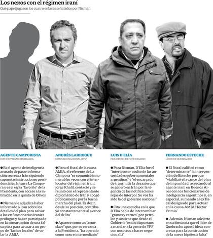 El fiscal Alberto Nisman pidió la declaración indagatoria de este agente como partícipe del plan para asegurar la impunidad de los cinco iraníes prófugos, acusados de volar la AMIA. Otros acusados por el fiscal son la Presidenta, el canciller Héctor Timerman, el diputado Andrés Larroque (de La Cámpora) y el dirigente piquetero Luis D’Elía.