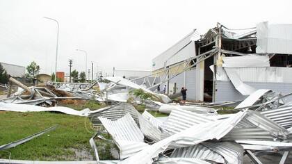SANTA FE.- Una "cola de tornado" provocó ayer la destrucción parcial o total de 20 empresas radicadas en el Parque de Actividades Económicas de Rafaela (PAER), al norte de esa ciudad del departamento Castellanos, 89 kilómetros al oeste de esta capital. Dos plantas industriales fueron arrasadas hasta el suelo y varias más sufrieron importantes destrozos. Está interrumpido el servicio eléctrico y varias empresas sufrirán una paralización total por muchos días. Las pérdidas económicas son millonarias, admitieron voceros del sector.