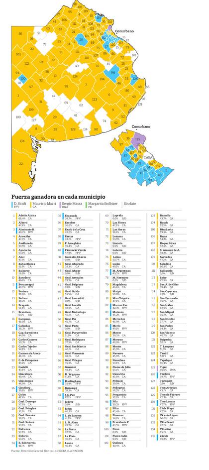 La elección de Cambiemos fue, en muchos municipios, mejor que en las primarias de agosto: en las PASO el Frente para la Victoria obtuvo el primer lugar y Cambiemos, el segundo; en términos individuales Vidal sumó más votos que las fórmulas de Aníbal Fernández y Julián Domínguez por separado.