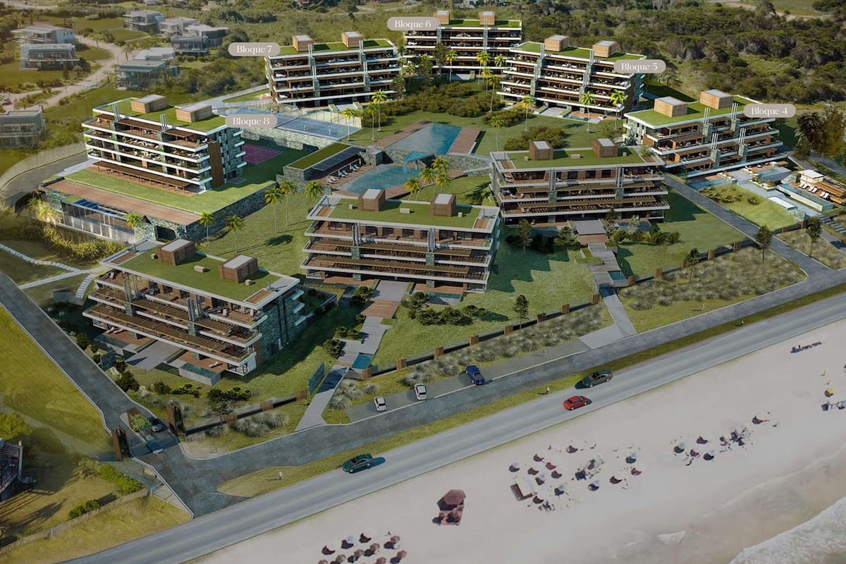 El proyecto es un referente del lifestyle esteño: viviendas amplias, terrazas y materiales nobles, enmarcadas por un entorno de dunas, mar y naturaleza.