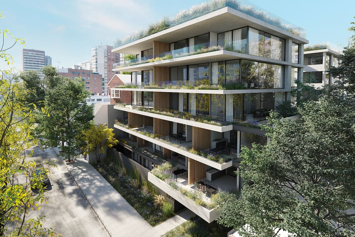 El “verde como protagonista” es la premisa de Black Echeverría, el emprendimiento de dos bloques de 5 pisos unidos por un patio inglés lleno de vegetación. Comercializado por Achaval Cornejo, este proyecto premium de CEK Group está ubicado en la calle Echeverría, entre Miñones y Artilleros, en un espectacular terreno con 30 metros de frente por 55 metros de fondo.
