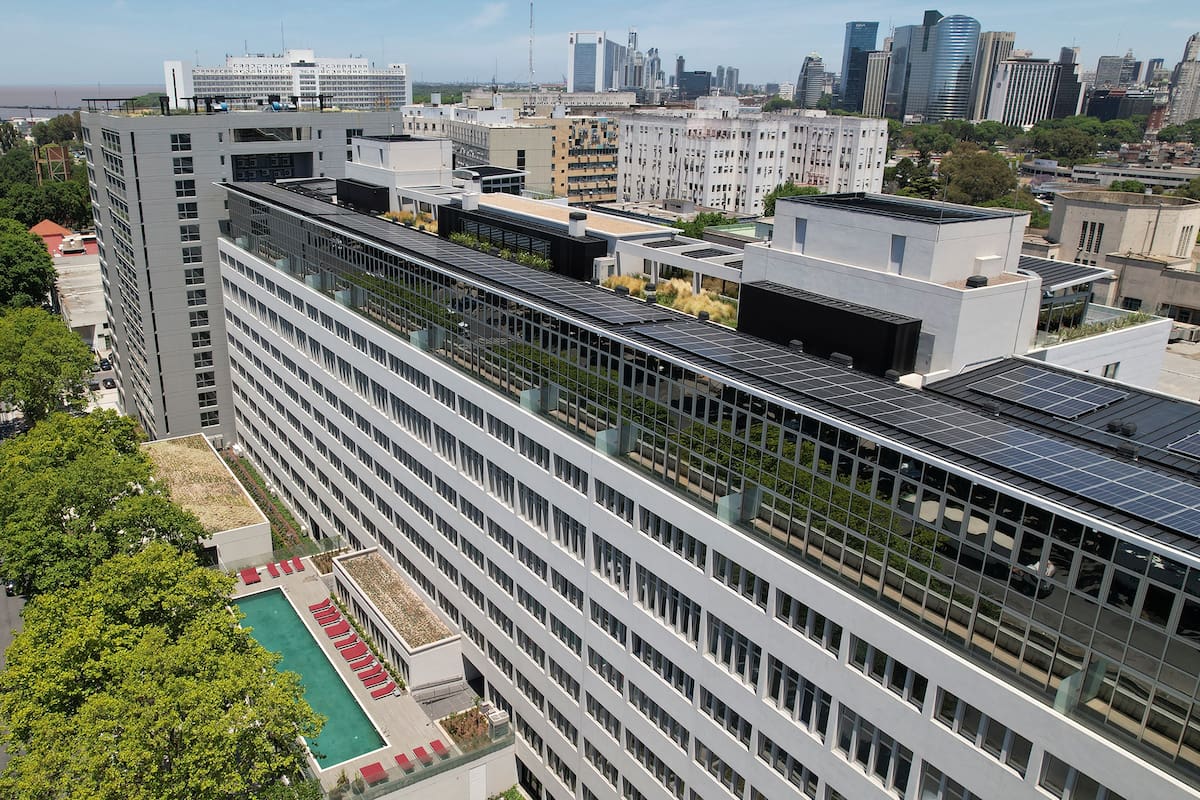 Por su parte, el Edificio Plaza, además de sus más de 33.000 m2 de oficinas AAA LEED, contará con un estacionamiento comercial y cocheras privadas en sus dos subsuelos, un gimnasio de alta categoría en su primera planta (operado por la prestigiosa cadena deportiva Sport Club) y un rooftop restó en el piso 11 de casi 700 m2, destinado a un local gastronómico de alto nivel y con vistas únicas al puerto de Buenos de Aires. En el sexto piso, también, se están instalando Spaces Workspaces, un operador de oficinas flexibles y espacios de coworking perteneciente a la cadena internacional IWG (mismo operador que Regus), que abre así su primer Spaces en el país.