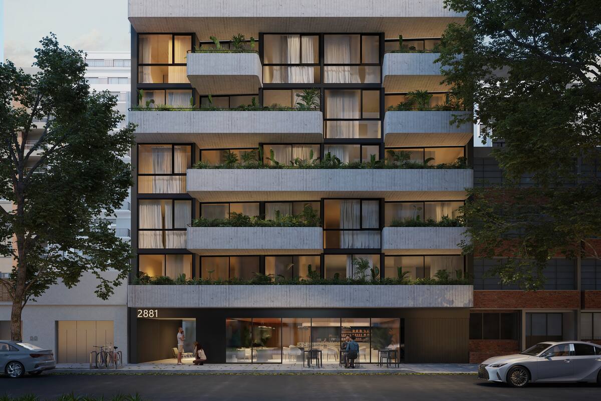 Todas las unidades compartirán un diseño eficiente y materiales de primera calidad: cielorrasos de hormigón visto, cerramientos con aislación térmica y sonora (DVH), cerraduras biométricas y sistema de calefacción por piso radiante. Además, el edificio incluirá domótica en espacios comunes.
