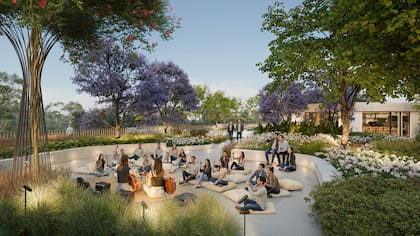 El tercer nivel alojará, además, la tercera plaza del complejo, el gran orgullo de los socios desarrolladores: 1.300 m2 verdes a 10 metros de altura desde donde se podrá contemplar toda la belleza del bosque de Parque Leloir. “No existe una plaza así en Buenos Aires”, dice con seguridad Leonardo Bernstein. Esas grandes vistas estarán acompañadas de un pequeño anfiteatro en el que se podrán realizar distintos eventos y, claro está, de un local gastronómico para poder disfrutar en todo momento del día.