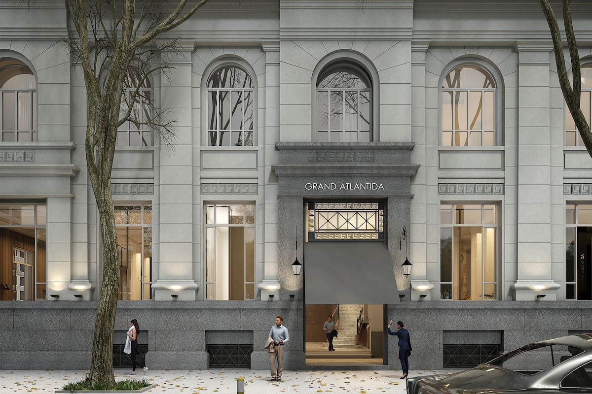 Grand Atlántida busca mantener vivo el patrimonio arquitectónico, fusionándolo armónicamente con una visión de vanguardia para los nuevos espacios. Con materiales de alta calidad y diseño, mantiene la fachada con estilo “clasicista” a la vez que crea nuevos espacios con una propuesta más atemporal y de gran personalidad. “El principal objetivo del proyecto es generar una estructura contemporánea que esté preparada para lo que vendrá y que pueda interpretar de la mejor manera la idiosincrasia de lo preexistente”, precisa Ignacio Aldazabal.