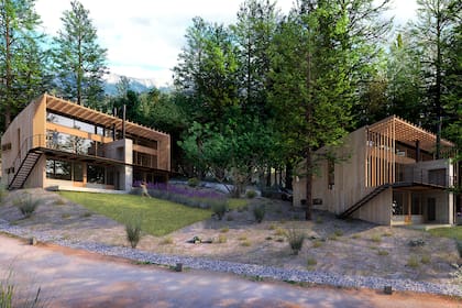 Vista Azul queda a cuatro kilómetros del centro de Villa La Angostura, sobre la ruta 40 y frente a Puerto Elma. El proyecto nació como un barrio cerrado y se desarrolla en un lote de más de una hectárea de bosque autóctono patagónico, incluidas variedades de cipreses y radales y una vista plena y única del Nahuel Huapi. Ahí mismo se desarrolla un total de doce casas de dos plantas, cada una con 105 metros cuadrados cubiertos más las terrazas con parrilla individual. Las unidades tienen además espacio para dos autos, jardín parquizado de cien metros para uso exclusivo y hasta espacio de huerta.
