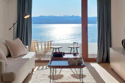 El edificio de arquitectura marcadamente patagónica luce cuatro niveles, en los que absolutamente todos los ambientes se abren hacia las imponentes visuales con sus terrazas como elementos de transición hacia el paisaje. Mientras tanto, el sector central del edificio articula dos alas diferentes y guarda el área de esparcimiento con su piscina in-out, solárium cubierto y descubierto y spa.