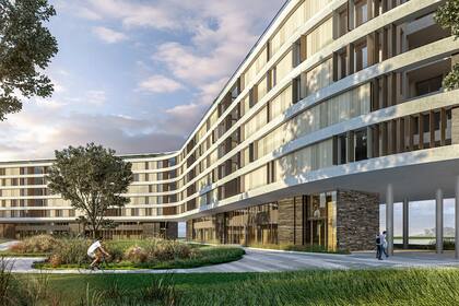 El nuevo edificio proyectado por Consultatio se incorpora al diseño del gran emprendimiento para ofrecer departamentos con vistas únicas tanto hacia el amanecer como hacia el atardecer sobre el lago central.