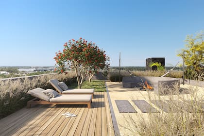 Los amenities incluyen centro de entrenamiento, rooftop, sauna, seguridad 24 horas y espacios verdes, además de coworking y áreas de juego para niños. “Lo lindo es que cada departamento va a tener su balcón terraza con parrilla y se genera un ambiente social importante, ya que uno puede vivir un poco en comunidad”, destaca Szylder.