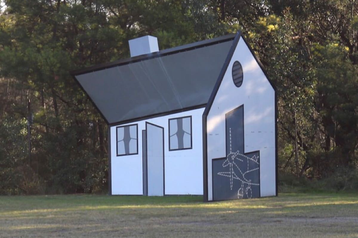 Es una recreación de un hangar de avión disfrazado y una casa de estilo de los años ’40 en blanco y negro usando ilusiones ópticas 3D de camuflaje. Quienes antecedieron a este trabajo fueron el zoólogo William Dakin, a cargo del Sydney Camouflage Group, que trabajó junto a los artistas Max Dupain y Frank Hinder. Todos trabajaron en el aeropuerto de Bankstown durante la Segunda Guerra Mundial, en donde utilizaron técnicas y métodos de camuflaje para disfrazar y engañar a los atacantes.
