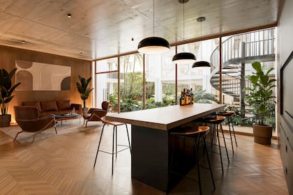 Lo que Vincent se propone no es vender solo metros cuadrados, sino sobre todo calidad de vida. La planta baja libre funciona como el corazón del proyecto y articula los espacios de uso común entre jardines, una piscina de 25 metros, solárium, gimnasio, spa y un Club de Juegos. Además, interpretando las nuevas dinámicas profesionales, incorpora un sector de coworking de 120 metros cuadrados aproximados, con cabinas insonorizadas y salas de reuniones.