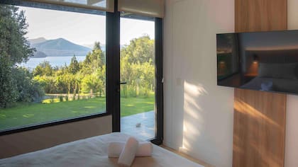 Ese espacio, concebido como una extensión natural del interior, es uno de los rasgos distintivos del proyecto. “El deck transparente hace que el paisaje se meta adentro de la unidad”, explica el arquitecto Jaime Grinberg, socio del estudio responsable. “La ubicación de las casas en el terreno permite una privacidad total, casi sin vistas entre una y otra. El diálogo es siempre con el paisaje, con el lago y con la puesta del sol”, agrega.