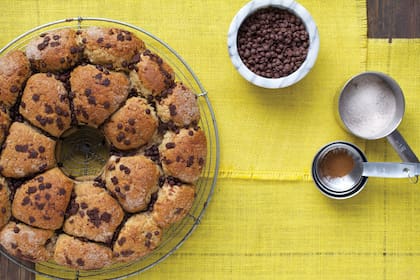 Usar un molde alto y hacer dos ruedas de bollitos una encima de la otra, o bien dos concéntricas.