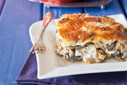 Aceitá apenas una fuente para horno y cubrí el fondo con la mitad de las berenjenas; encima acomodá toda la carne y terminá con el resto de las berenjenas.