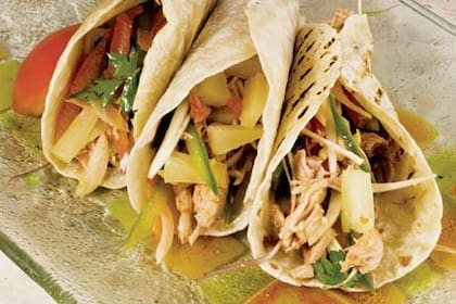 La fajita estilo pastor proviene del Líbano: trozos de carne de cordero marinados en hierbas que se insertan en una espada, uno detrás de otro, hasta formar una masa. Se asan a fuego vivo y se van cortando los bordes para armar los tacos o fajitas.
