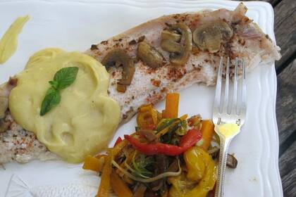 Este pescadito salió sencillamente maravilloso, pero debo aclarar que el toque lo puso una lectora de este blog, que me pasó el sabayón de papa y ajo. ¡¡¡Qué gran invento, amigos!!! Verán que lo adoptan para un montón de platos, o incluso pueden prepararlo para cuando sirven la copa, ni bien llegan los invitados, para combinar con nachos. Agradezco desde este espacio a Adgonia, que vive en los Estados Unidos y que lo extrajo, según me dice en el mail, del libro Bistro, de Gerald Hirigoyen.