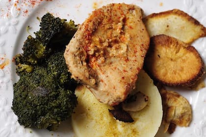 Es una variante sencilla aunque tiene un nombre exótico, pollo tandoori . Pero quería salir del pollo a la cacerola o al horno, y elegí esta receta que salió fantástica. Yo acompañé el plato con chips de mandioca y brocoli al vapor. Sencillo, pocas calorías y diferente.