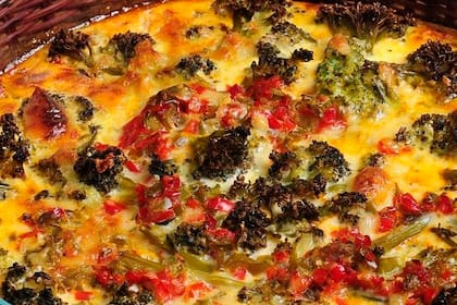 Hoy cocinamos fácil, fácil, y además rápido. En realidad, más que una tarta esto es una suerte de clafoutis. La única diferencia es que éste se hace con cerezas u otra fruta, y yo lo hice con verduras que ya tenía cocidas en la heladera, pero la técnica es muy similar. Es delicioso y hoy les voy a pasar la receta también. Lo bueno además de este plato es que no tiene masa, lo que lo hace ideal si estamos cuidando la línea.
