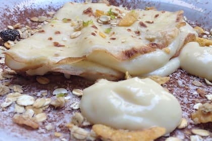 Poner en el corazón del panqueque dos cucharadas generosas de crema y un poco de muesli.