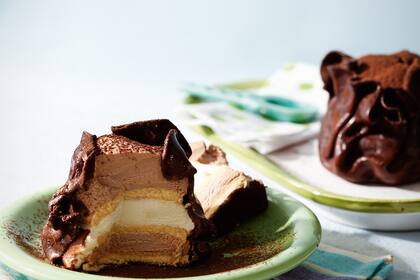 El chocolate gianduia se consigue en bazares de pastelería. Puede ser reemplazado por fondant de chocolate o por la cobertura de la Torta Carnavalesca