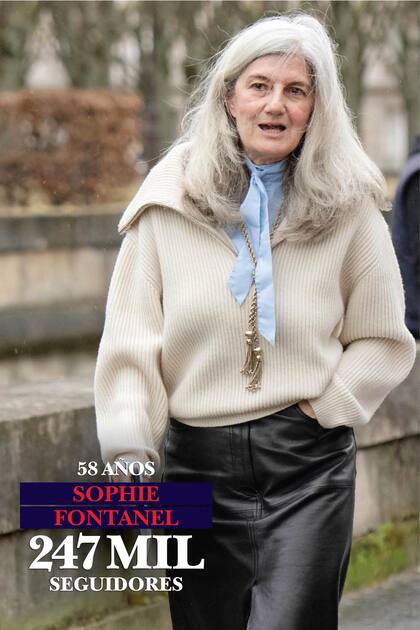 “Compro la mayoría de mi ropa en mercados de pulgas y tiendas de segunda mano. No sigo tendencias y no presento nuevas colecciones en mi cuenta. No soy una influencer, pero uno podría decir que tengo cierta influencia”, declaró en una entrevista la escritora, periodista y crítica de moda Sophie Fontanel. Si bien su estilo está lejísimo del de una fashion victim, la naturalidad, la frescura y el humor con que compone sus looks son cautivantes. En 2017, esta francesa que tiene una columna en L’Obs, saltó al estrellato cuando decidió dejar de teñirse el pelo y escribió al respecto en Une Apparition, que rápidamente se convirtió en best-seller.