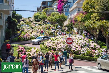 Los jardines públicos de esta calle abrazan curvas imposibles con hortensias multicolores y convierten 180 metros de ladrillos rojos en la postal más reproducida de San Francisco