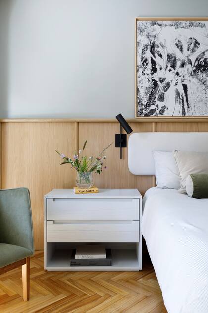 La otra novedad que sumaron en esta habitación fueron las dos mesas de noche a medida, también en un tono visón.