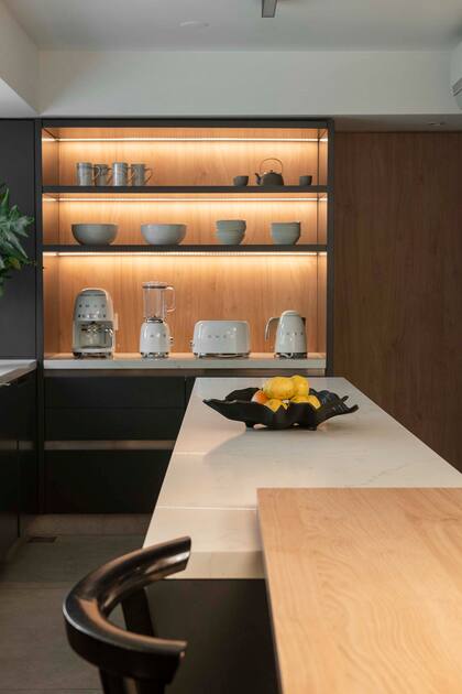 “El mueble desayunador fue el único pedido que tuvimos, después confiaron todo en nosotras”, aseguran las arquitectas. Antes de empezar la obra los clientes mencionaron que querían un sector donde pudieran tener a mano todos los electrodomésticos que usaban a diario, como la licuadora o la cafetera.