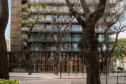 Antes de ingresar al hotel, una escultura de bronce del grupo de artistas argentinos SY propone una experiencia lúdica e inclusiva, con boquillas para que niños y adultos puedan tocar y jugar.