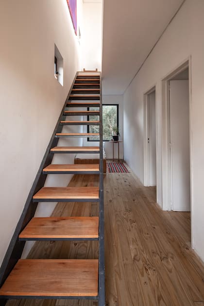 En la planta baja está el área privada: la habitación principal con baño en suite, un segundo cuarto con un baño que también es de uso público, y un pasillo amplio –de 2,20 metros– con un sillón cama que funciona como apoyo para cuando reciben más invitados.