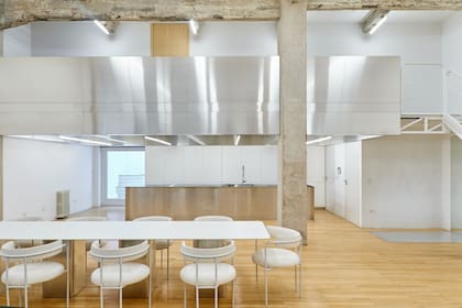 “La planta baja es un espacio muy grande, con múltiples usos. Buscamos crear un ambiente poco rígido, que se pueda prestar para muchas cosas”, cuentan Pailhé y Carugno Durán. El mobiliario tiene también grandes dimensiones, y es flexible: el sillón y la mesa baja son modulares, la mesa de comedor tiene ruedas.