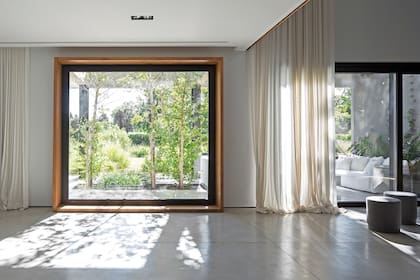 Karina Kreth decidió enmarcar en petiribí macizo el ventanal para enfatizar el eje central y dirigir la vista desde la entrada principal.