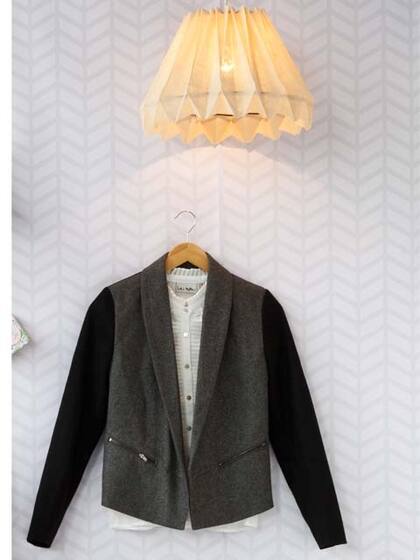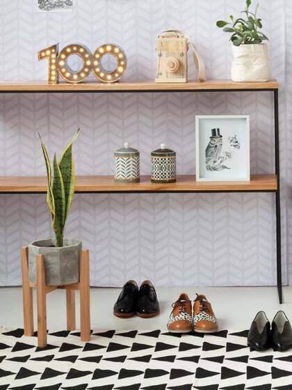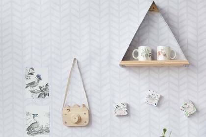 Empapelado autoadhesivo, Bohême Deco, $450 por rollo. Lámpara Tinkel, Issei, $1700. Blazer, Portsaid, $2980. Camisa, Las Pepas, $1190.