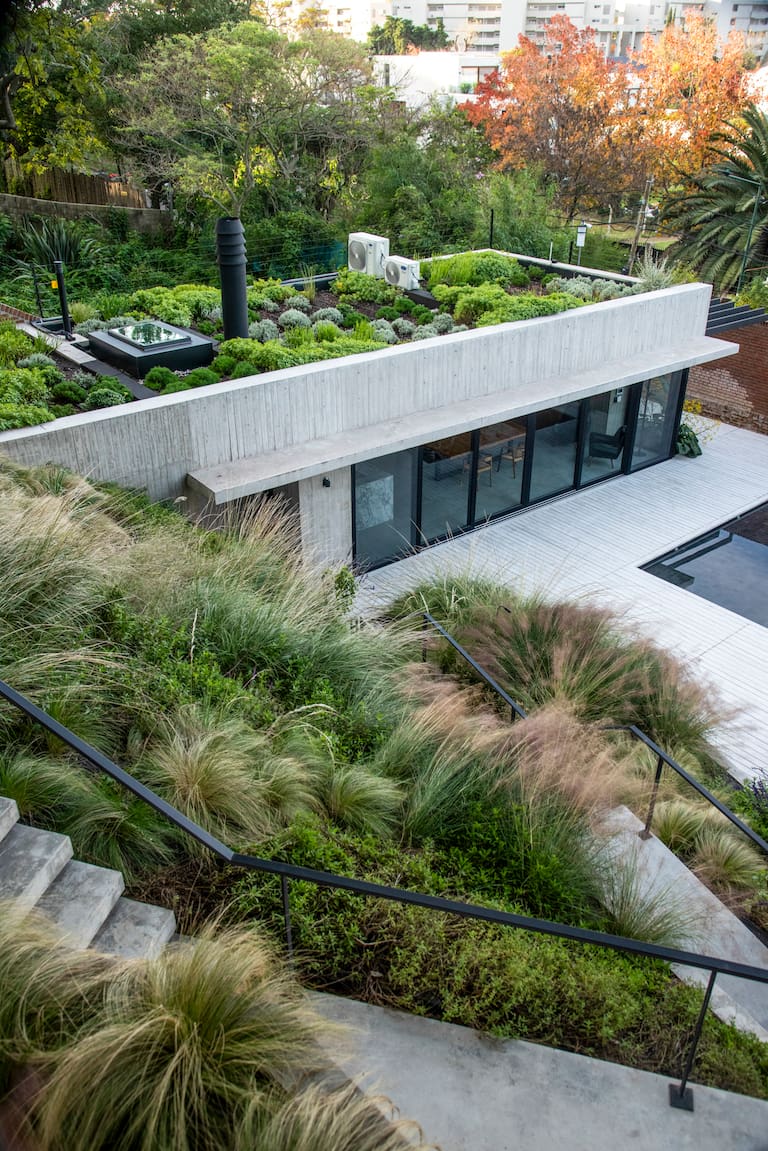 La vegetación se integra a la arquitectura y define recorridos, usos y experiencias sensoriales, transformándose en una verdadera extensión de la casa
