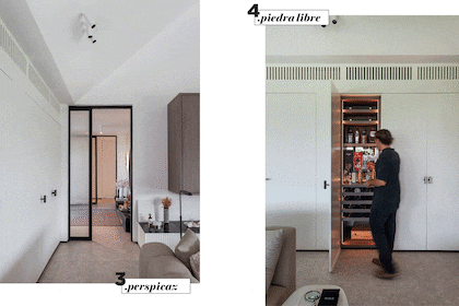 - Piedra libre: “Integrada al estar, una cava y estantes de almacenamiento para bebidas y cosas ricas están diseñados para agasajar a nuestros invitados.’’