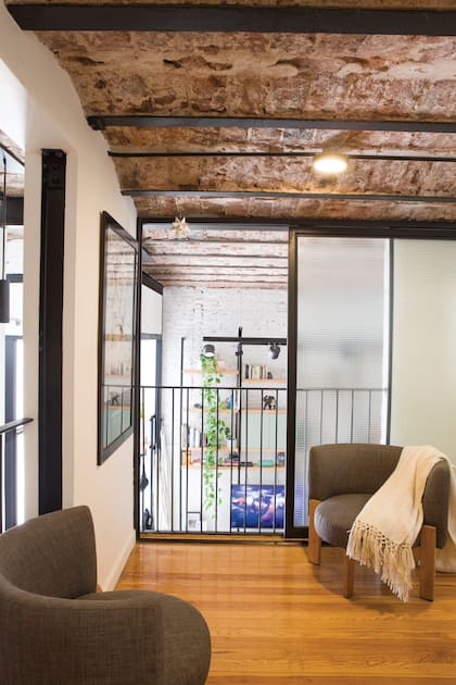 La casa original tenía serios problemas: instalaciones antiguas, una disposición que desaprovechaba los contados metros y el peor diagnóstico, problemas de humedad. Allí se lanzaron a cambiar las conexiones de plomería y electricidad, hacer los revoques a nuevo, levantar pisos (recuperando lo posible) y crear el cerramiento vidriado que trae tanto aire y luz. Evaluando el trabajo hecho, Lojo y Mugetti concuerdan: “Rescatamos la cáscara”. Que no es poco.